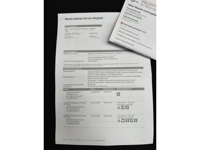 - Onderhoudsboekje (fysiek)