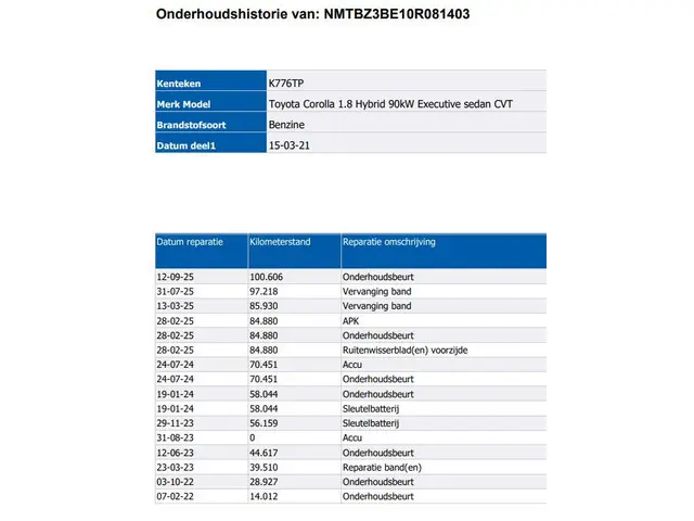 Voertuiggegevens van deze Toyota Corolla
